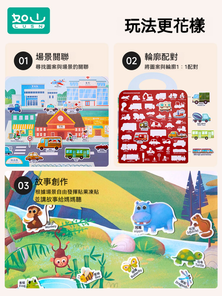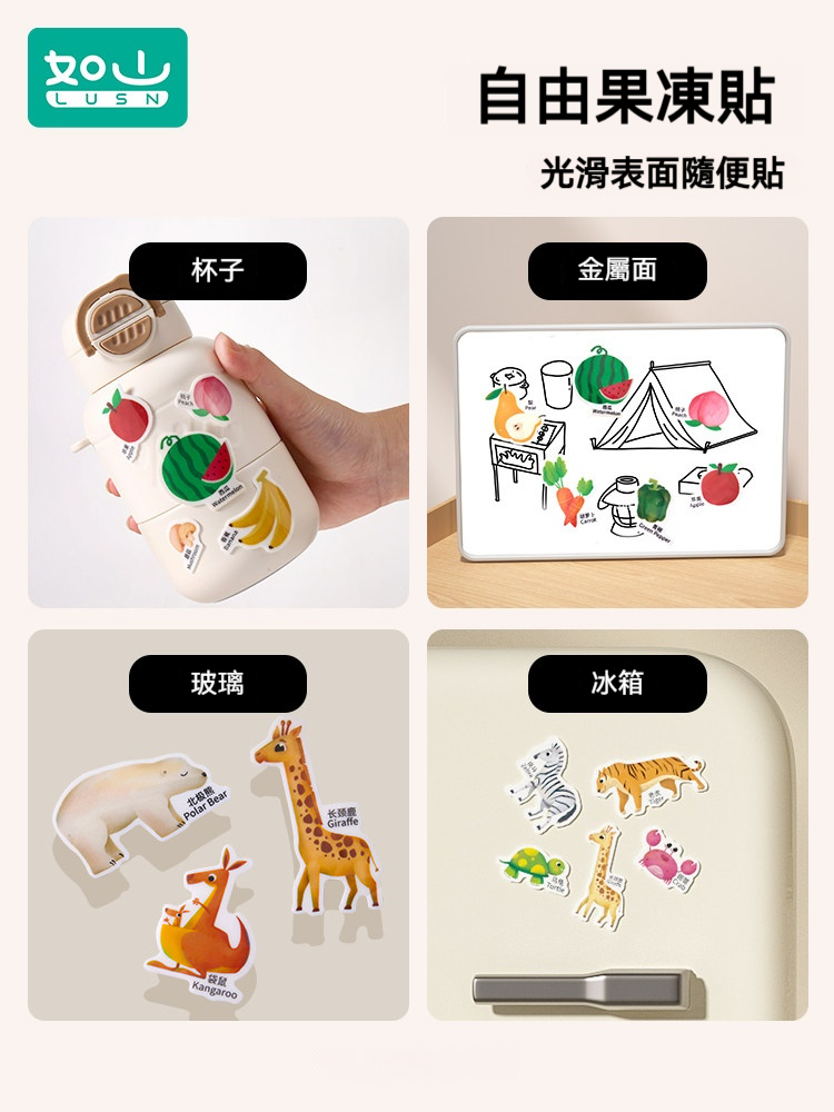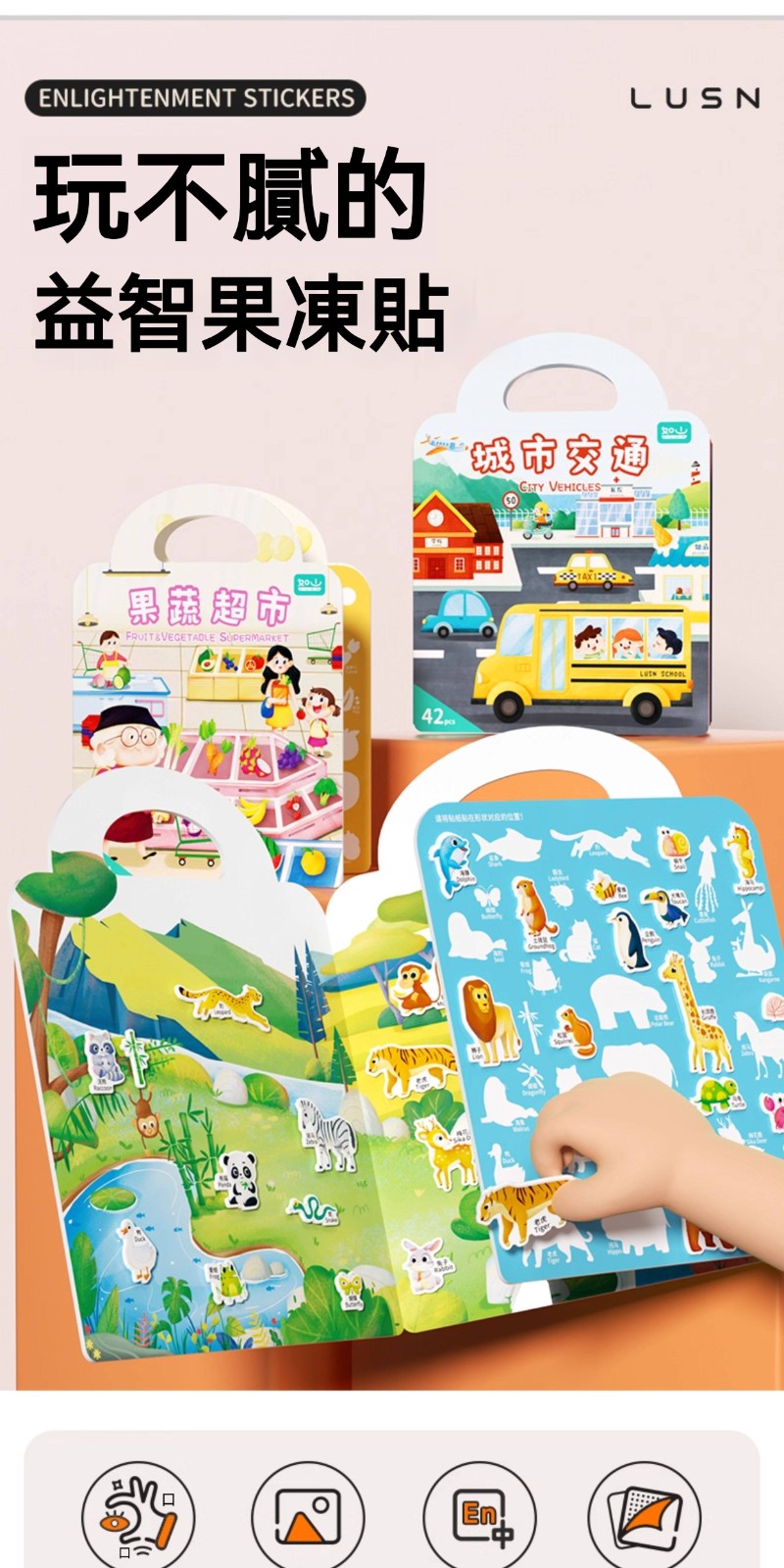 ✨山宝宝果冻贴纸书✨3歲以上 重複撕貼 安靜書 兒童益智玩具 Q彈果凍材質 撕不爛 可水洗 百玩不膩 增進專注力 認知學習 台灣寶寶最愛❤️