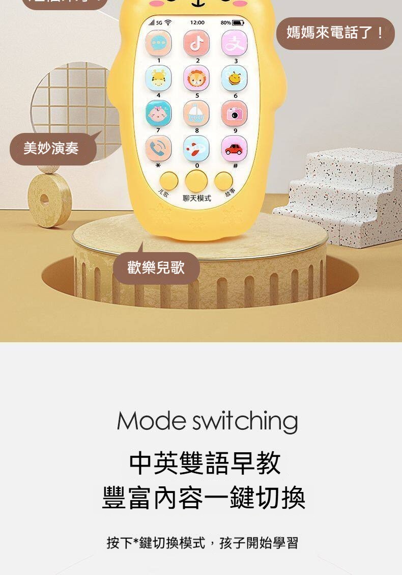 寶寶音樂學習手機玩具|可啃咬安全材質・聲光互動早教設計 ✨ 陪伴0-1歲啟蒙成長、安撫又好玩